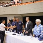 El acto contó con la presencia del comisionado ejecutivo para la Reforma Policial, general (r) Ernesto García Hernández; la coronel Aida Valdez, rectora interina del Instituto Policial de Educación Superior (IPES); la coronel Alexandra Familia Acevedo, directora de la Escuela de Entrenamiento Policial; y la educadora Mu-Kien Adriana Sang Ben, presidenta de la Junta Directiva de la Unidad de Modernización Educativa.