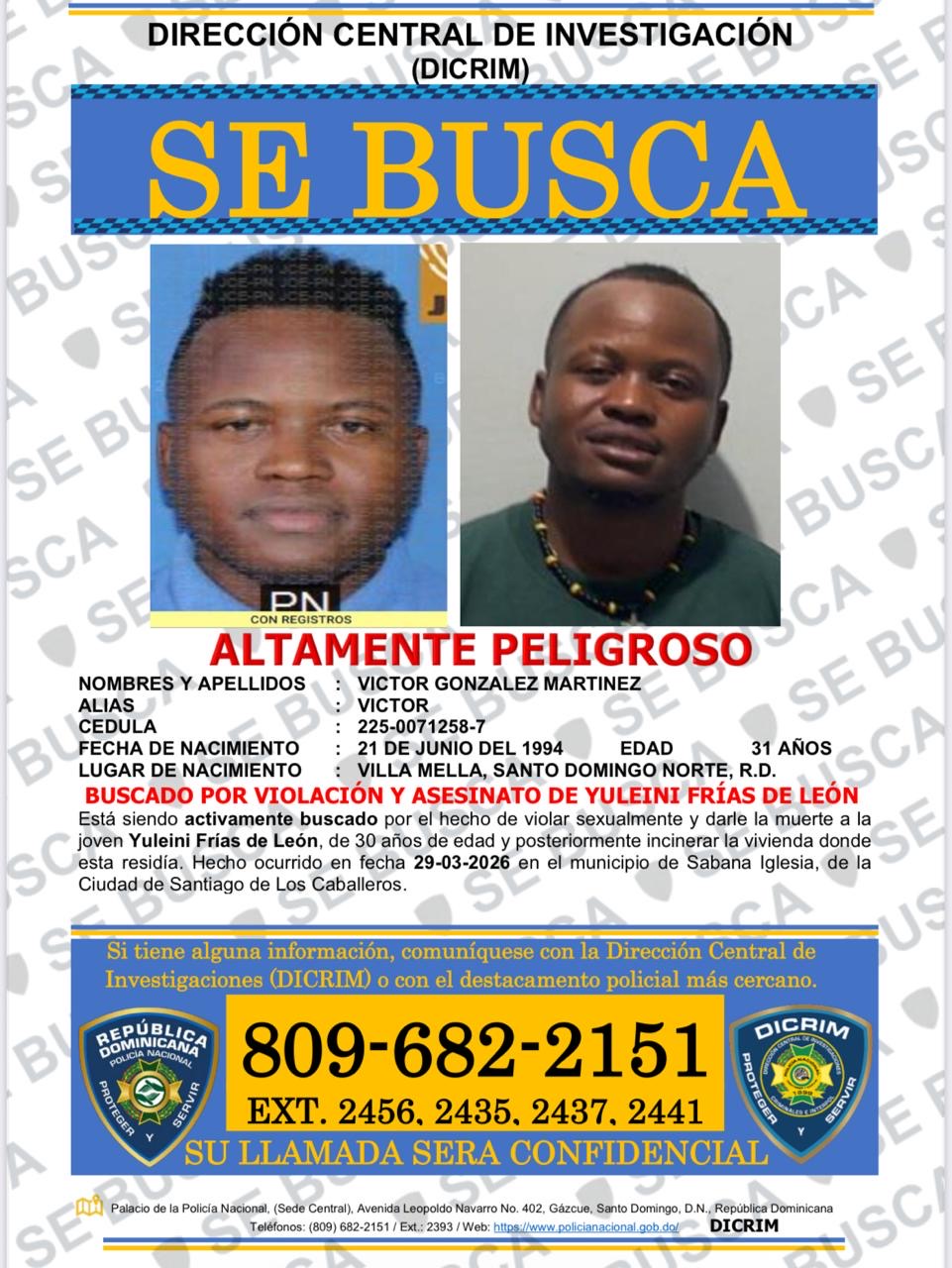 Policía Nacional activa búsqueda de hombre acusado de violación y homicidio de mujer en Sábana Iglesia, Santiago de los Caballeros