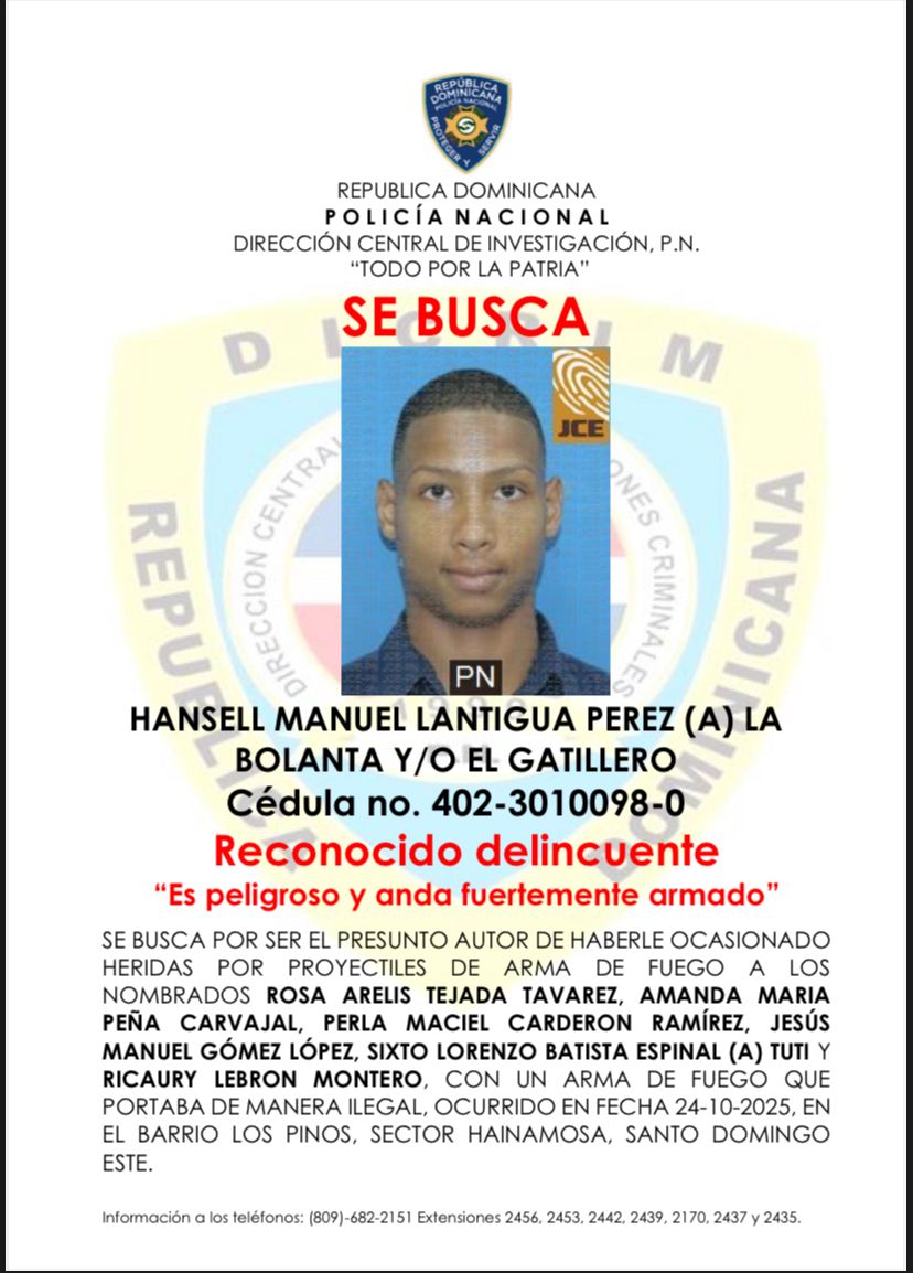 Policía Nacional activa búsqueda de “La Bolanta”, señalado como presunto autor de tiroteo que dejó seis personas heridas durante conflicto social en fiesta clandestina en Hainamosa, SDE