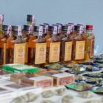 En una segunda intervención, fueron decomisadas 100 porciones de un vegetal, presumiblemente marihuana, una porción de un polvo blanco que se presume es cocaína, así como 17 botellas de alcohol adulterado, representando un riesgo para la salud de la población.