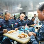 Tras los discursos, el director general de la Policía Nacional y el comandante general de la Armada compartieron la cena sentados en distintas mesas, interactuando de manera cercana con agentes de diversos rangos, fortaleciendo el ambiente de camaradería, respeto y hermandad institucional.