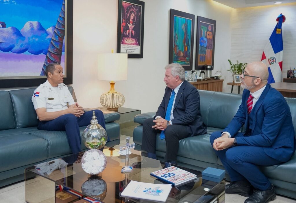 El director general de la Policía Nacional, mayor general Andrés Modesto Cruz Cruz, recibió este miércoles 15 de abril en su despacho a S. E. Sergio Maffettone, embajador de Italia en el país, en un encuentro orientado a consolidar la cooperación bilateral en materia de seguridad, fortalecimiento institucional e intercambio de buenas prácticas.