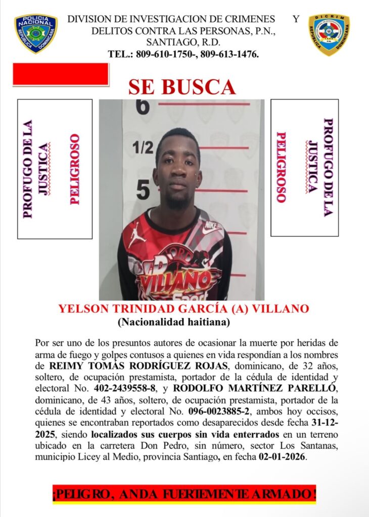 La Policía Nacional, en coordinación con el Ministerio Público, capturó a uno de tres haitianos, señalados como presuntos autores de la muerte de Reimy Tomás Rodríguez Rojas y Rodolfo Martínez Parelló, quienes habían sido reportados como desaparecidos desde el 31 de diciembre de 2025 en Santiago.