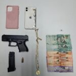 Durante la requisa en la residencia, los agentes ocuparon una pistola calibre 9mm con numeración ilegible, un teléfono celular iPhone 11, una cadena color amarillo, RD$2,300 en efectivo y una motocicleta marca Gato, modelo CG200, año 2023, color dorado.