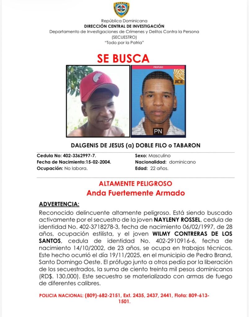 Los informes de inteligencia advierten que Dalgeni de Jesús es un individuo altamente peligroso y violento, y que se presume se desplaza fuertemente armado, por lo que se exhorta a la ciudadanía no intentar detenerlo y, en cambio, aportar cualquier información de manera discreta y segura.