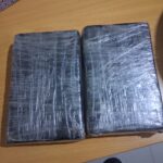 Al ser inspeccionado el lugar, las autoridades ocuparon una caja de cartón que el detenido transportaba, en cuyo interior fueron encontrados dos paquetes de un polvo blanco, presumiblemente cocaína, envueltos en cinta adhesiva transparente con fondo negro y con la estampa de la marca Volkswagen.