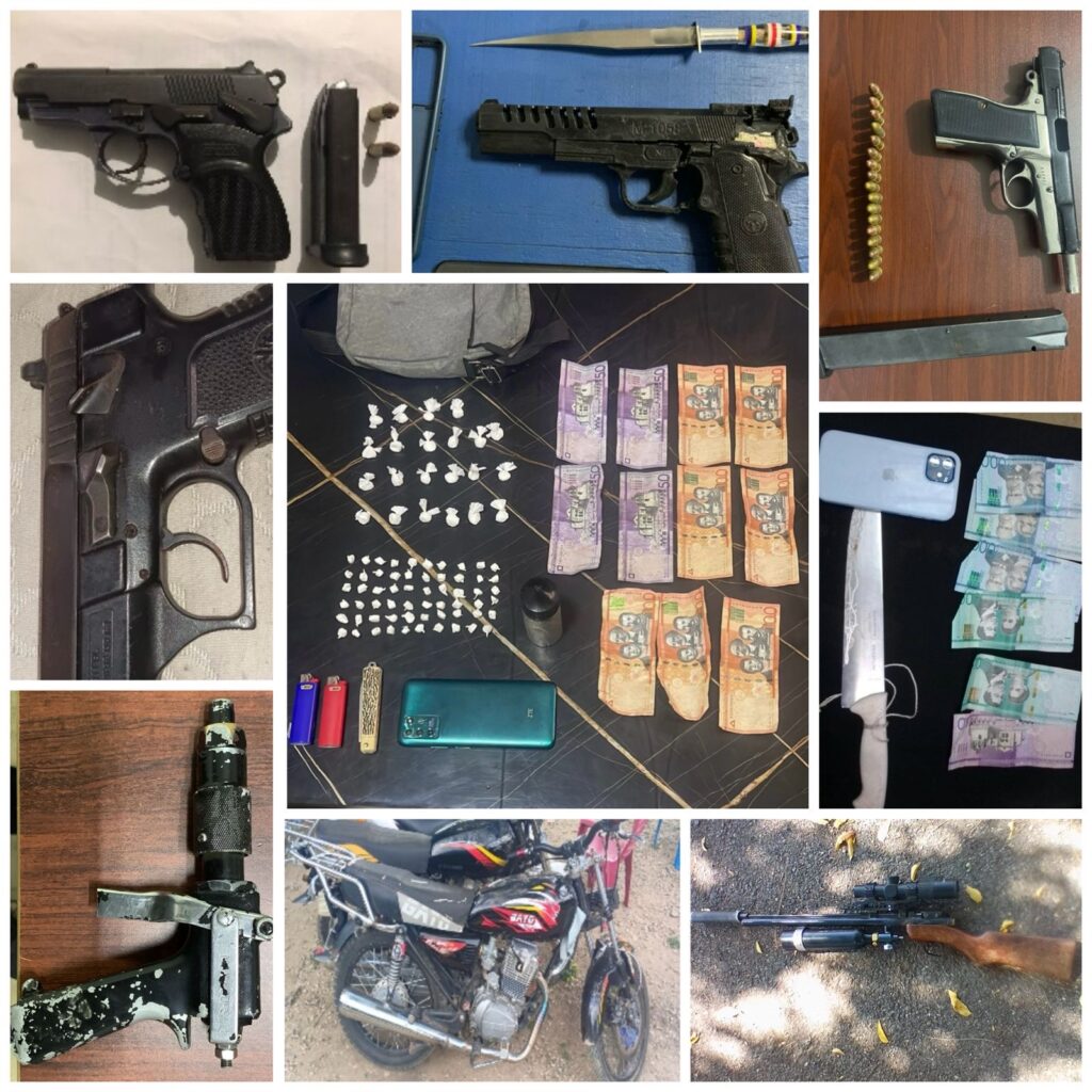 Además, fueron detenidos otros implicados en intento de asalto, posesión de drogas y porte ilegal de armas en sectores como Mari López, Cienfuegos y San José de las Matas.