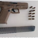 En el sector Rafey, durante labores de patrullaje, fue apresado Anderson Castillo Puello, de 18 años, quien viajaba como pasajero en una motocicleta cuyo conductor emprendió la huida. Al joven se le ocupó una pistola Glock 19X, calibre 9 mm, con un cargador de 30 cápsulas y ocho cápsulas adicionales, sin ningún tipo de documentación.