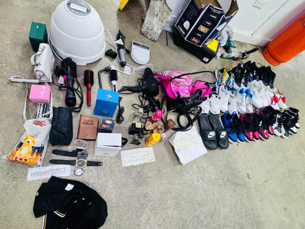 En dicha intervención fueron recuperados diversos artículos reportados como robados, entre ellos calzados, prendas de vestir, relojes, perfumes, equipos electrónicos, accesorios personales y otros objetos, los cuales se encuentran bajo custodia del Ministerio Público para los fines legales correspondientes.