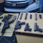 Durante la intervención se ocuparon armas de alto poder, entre ellas un fusil M4 Carbine 5.56mm con 27 cápsulas, un fusil DPMS A-15 con 29 cápsulas, una Uzi Luger modelo TEC-9, dos pistolas Glock 9mm (una con cargador de 15 y otra con cargador tipo caracol de 50 cápsulas), así como otra pistola 9mm sin serie y un cargador de 30 cápsulas.