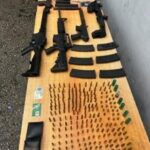 Durante la intervención, realizada en una residencia ubicada en la calle Luis E. Del Monte, las autoridades ocuparon dos fusiles calibre 5.56, dos armas tipo Uzi calibre 9mm y un revólver calibre .38, así como 190 cápsulas para fusil, municiones adicionales de 9mm y cartuchos calibre 12, entre otros pertrechos militares.