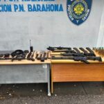 Un total de cinco armas de fuego, incluyendo dos fusiles, dos subametralladoras tipo Uzi y un revólver, además de más de 200 municiones de distintos calibres, fueron ocupadas durante un allanamiento realizado por miembros de la Policía Nacional, en coordinación con el Ministerio Público y otros organismos de seguridad, en el centro de la provincia de Barahona.
