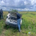 El automóvil, marca Nissan, color blanco, tipo carga, año 2007, fue localizado abandonado en una finca de arroz ubicada en el municipio de Pimentel, provincia Duarte, como resultado de labores de seguimiento e investigación realizadas por los agentes actuantes.