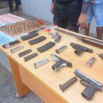 Barahona.- En una operación conjunta, agentes de la Policía Nacional, adscritos al Departamento de Investigación (DICRIM), junto a la Unidad de Acción Rápida, la Dirección Central de Inteligencia (DINTEL), la Dirección Nacional de Control de Drogas (DNCD) y el Ministerio Público, arrestaron a tres personas y ocuparon un significativo arsenal de armas de fuego, municiones, dinero en efectivo y otros objetos ilícitos.