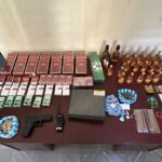 En el interior de una gaveta, las autoridades encontraron una funda que contenía dos porciones de marihuana con un peso aproximado de 11.0 gramos y una porción de presunto crack con un peso aproximado de 12.0 gramos. También se ocupó una pistola de juguete color negro, un radio de comunicación y un total de 2,340 cigarrillos distribuidos entre cajetillas de diferentes marcas.